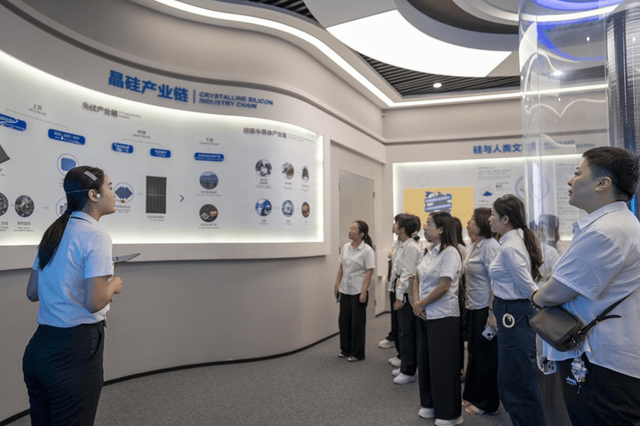 四肢通威股份光伏产业的关节组成部分,在乐山基地,一滑东说念主凝听了光伏时期、坐蓐经由、资源轮回运用等方面的教学先容,实地参不雅了该基地从多晶矿物硅料想光伏电板组件的当代化、智能化完好产业坐蓐链。