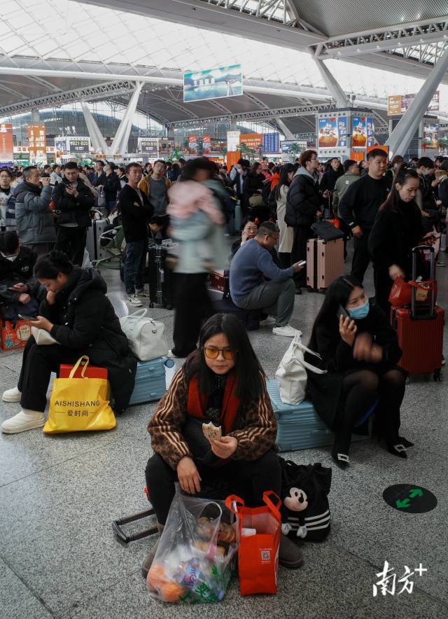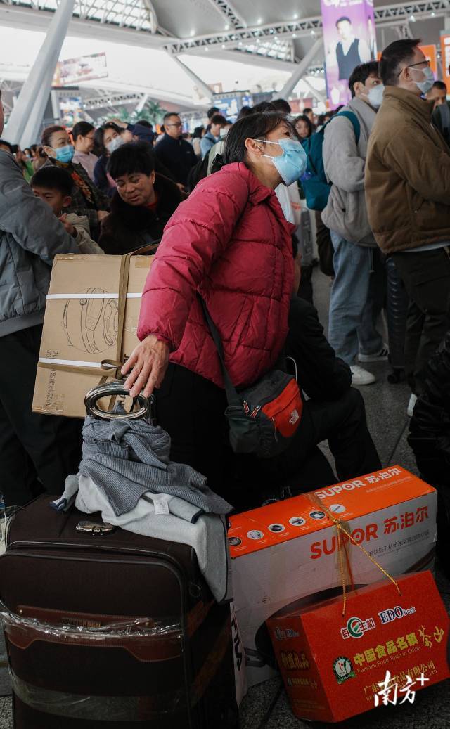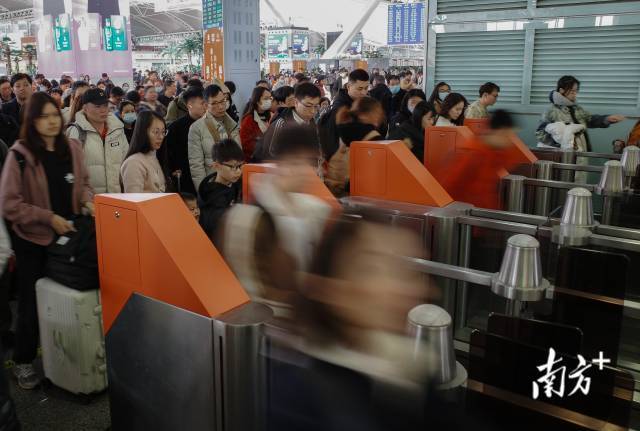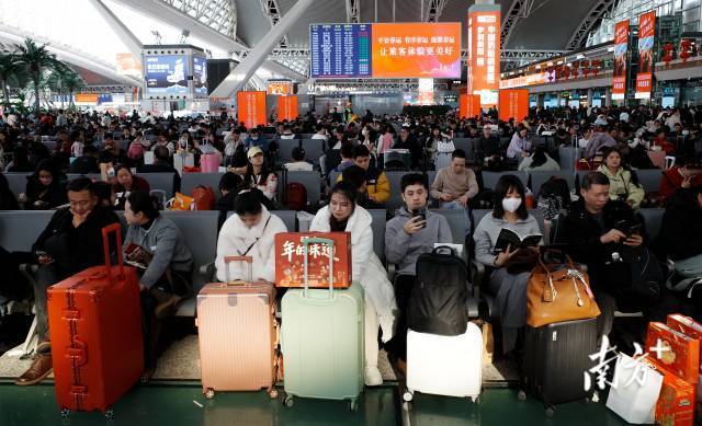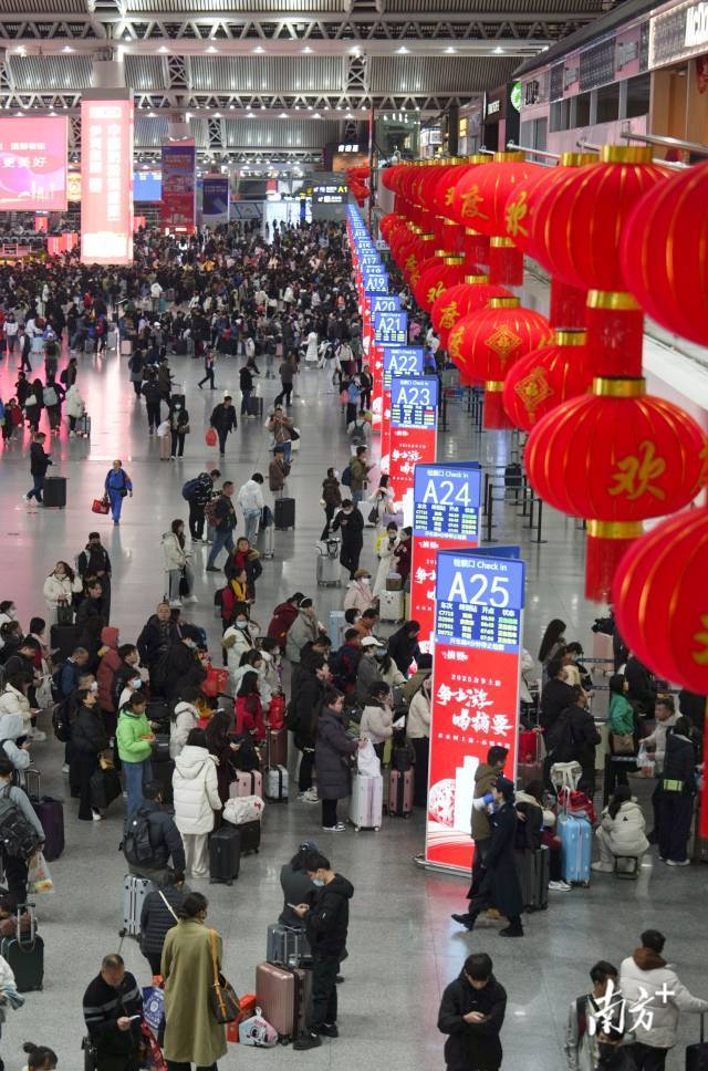 1月27日,广州南站迎来出行岑岭。很多搭客佩戴万里长征的礼物,踏上回家路。今天是春运第14天,广铁集团预测发送225.8万东谈主次,加多19.2万东谈主次,同比增长9.3%。到达客流190.3万东谈主次,加多16.1万东谈主次,同比增长9.2%。
